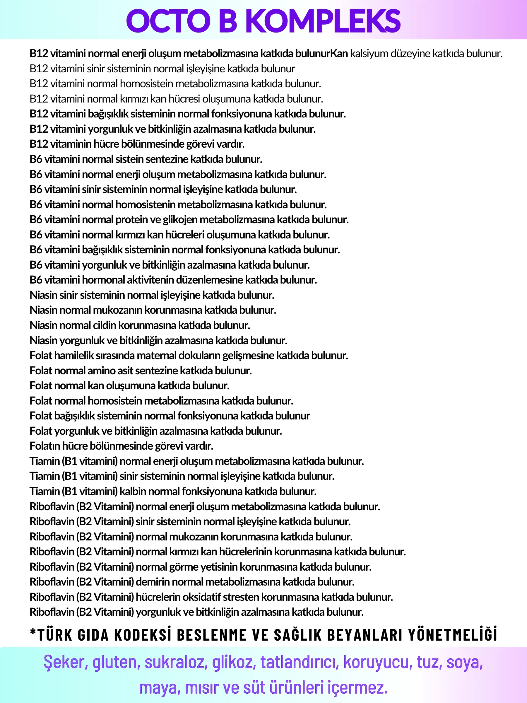 Octo B KompleksTam İçerik Listesi