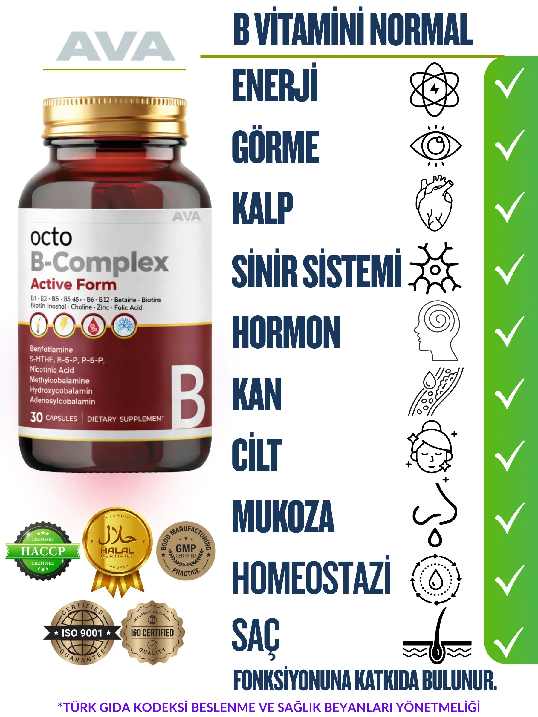 Octo B Kompleks Aktif 30 Bitkisel Kapsül Ava Vitamin